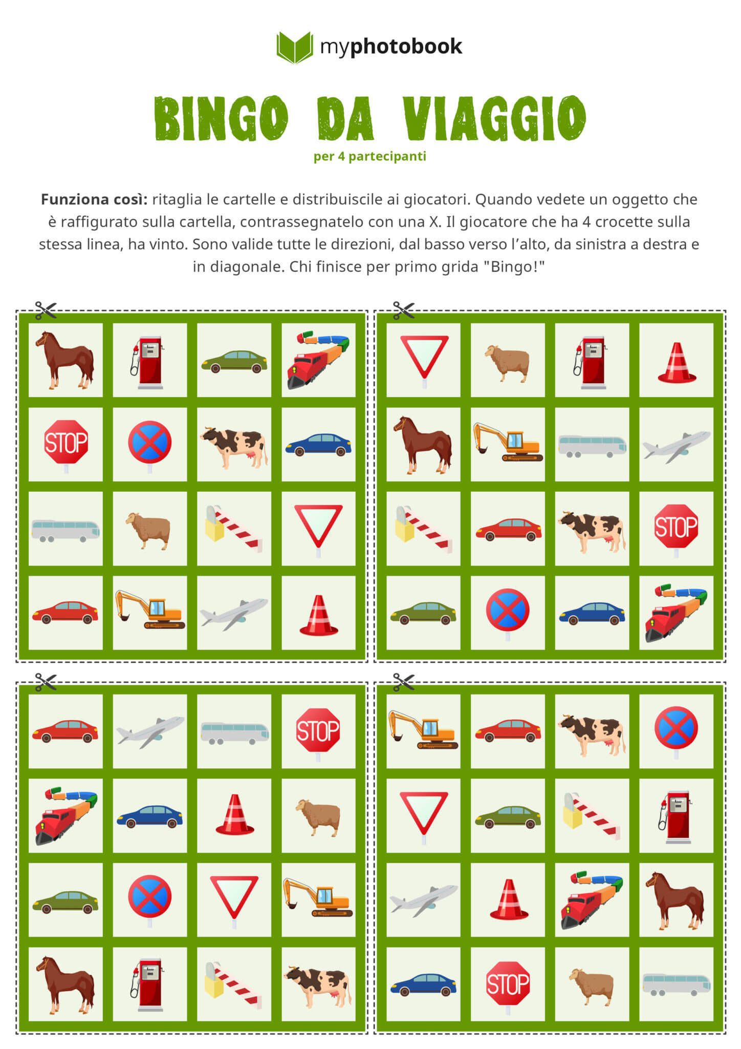 - Scarica da questo link il nostro bingo da viaggio e stampalo.